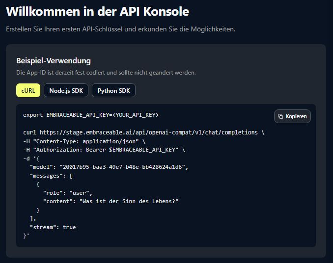 Unsere Technologie ist so konzipiert, dass Sie Ihre bereits getätigten Investitionen zur Integration von KI-Modellen nicht verwerfen müssen. Wir sind API-Struktur-kompatibel mit Sprachmodell APIs.