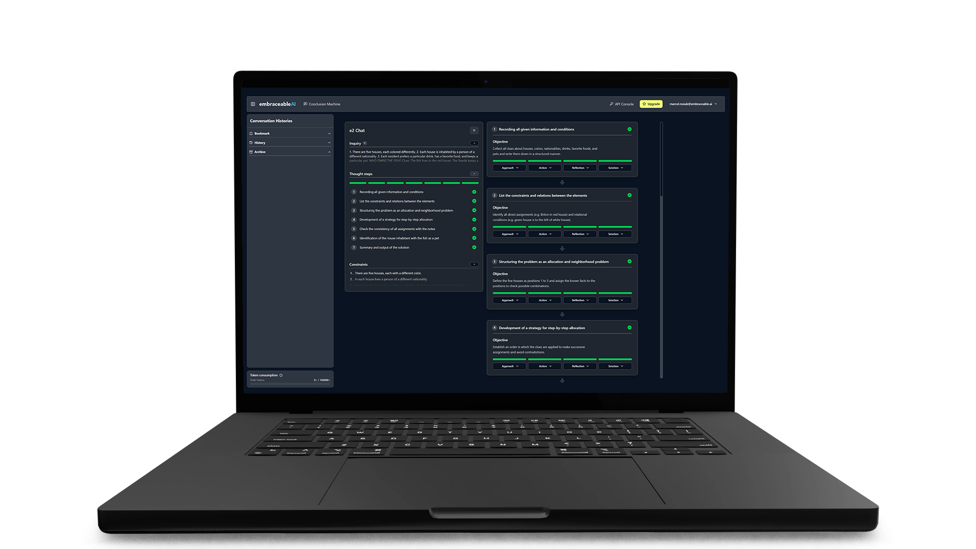 Conclusion Machines bieten Ihnen einen logischen und strukturierten Ansatz.  Sie können aus allgemeinen Regeln gesicherte Schlussfolgerungen ziehen, Halluzinationen reduzieren und Probleme gezielt lösen.